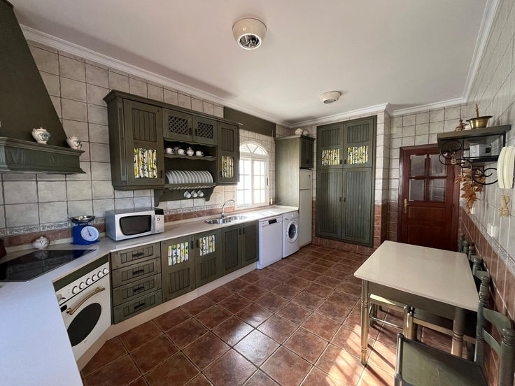 Tiene 4 habitaciones dobles, salón con chimenea, rincón comedor, cocina totalmente equipada, jardín, piscina, garaje...
